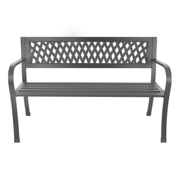 Ażurowa ławka ogrodowa z oparciem parkowa na taras balkon metalowa konstrukcja grafitowa