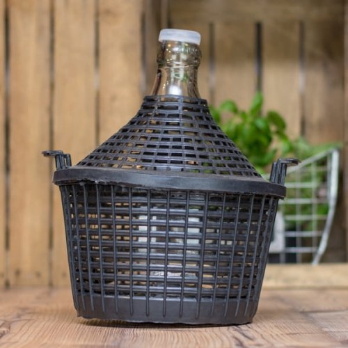 Balon w koszu plastikowym z wąskim otworem 54l na wino, nalewki i miód pitny