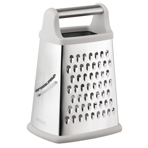Tarka KINGHoff KH-1990 to funkcjonalny przyrząd, który ułatwia przygotowywanie różnorodnych posiłków. Dzięki czterem stronom z odmiennymi ostrzami pozwala szybko zetrzeć, poszatkować i rozdrobnić ulubione produkty - od warzyw i owoców po ser czy czekoladę. Solidna konstrukcja ze stali nierdzewnej zapewnia trwałość i higienę użytkowania, a wygodny uchwyt gwarantuje komfortową pracę.