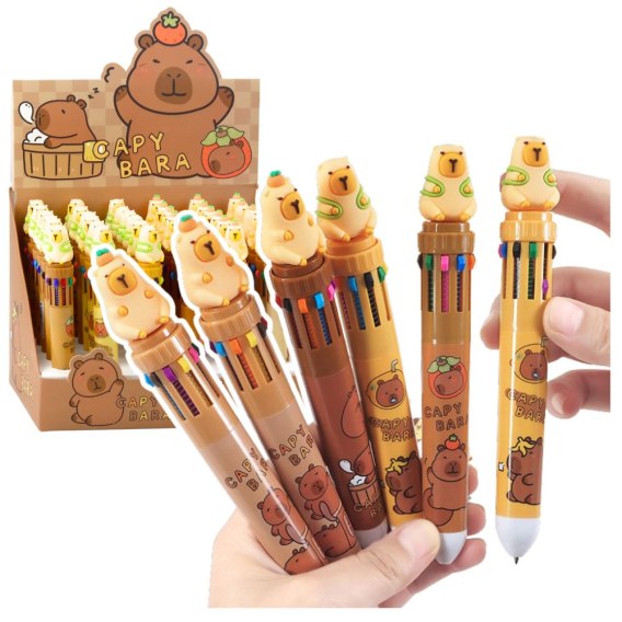 - 1 x długopis wielokolorowy z figurką kapibary