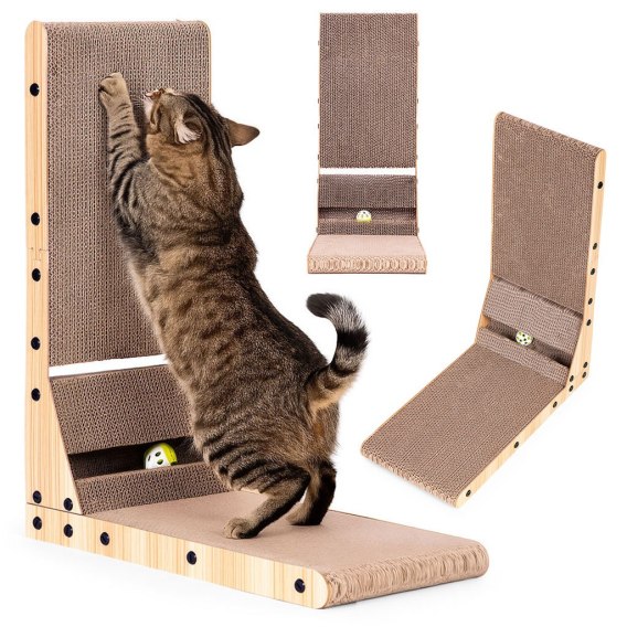 Drapak tekturowy dla kota narożny kartonowy legowisko z zabawką Petsi