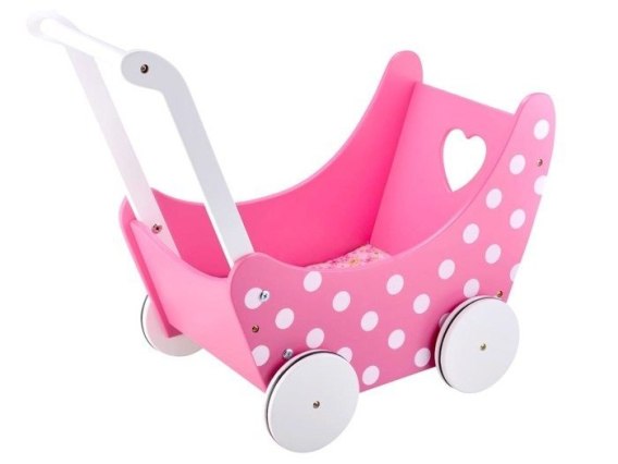 Uroczy, drewniany, wózek dla lalek, z pewnością zachwyci każdą małą opiekunkę lalek, misiów i innych przytulanek. Wózek wykonany jest bardzo z starannie, z wysokiej jakości drewna. Utrzymany jest w bardzo ładnej, dziewczęcej kolorystyce.