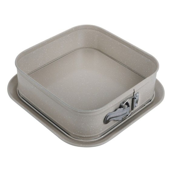 Marmurkowa powłoka nieprzywierająca umożliwia pieczenie z minimalną ilością tłuszczu i sprawia, że wypieki łatwo odchodzą od formy, zachowując idealny kształt. Dzięki odpinanemu bokowi z klamrą formę można błyskawicznie otworzyć, a wypiek lub deser zaserwować bezpośrednio na stabilnej tacy dolnej, bez potrzeby przekładania.