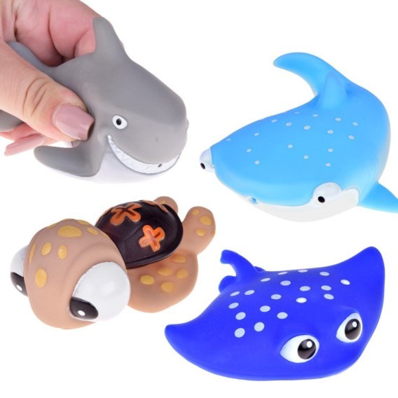 Gumowe zwierzątka do kąpieli x4 Żółw Rekin Wieloryb Płaszczka ZA5858