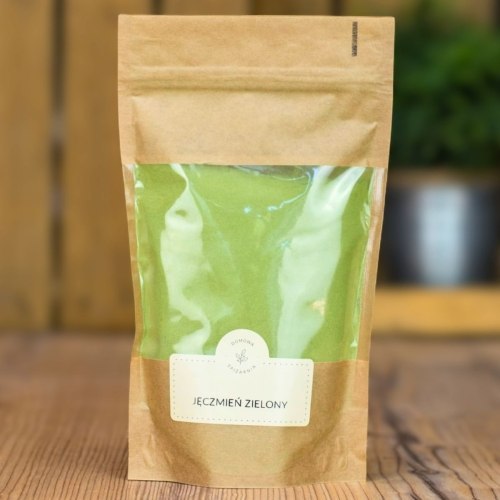 Młody jęczmień to źródło witamin i składników mineralnych. Stanowi bogactwo witamin z grupy B, antyoksydantów (witamina C i E, beta-karoten), żelaza, wapnia, magnezu, cynku. Zawiera naturalne hormony i chlorofil oraz niezbędne aminokwasy, których organizm ludzki nie jest w stanie sam wyprodukować. Młody jęczmień w proszku to idealne rozwiązanie dla osób, które chcą jeść zdrowo, ale jednocześnie nie mają na to zbyt wiele czasu - wystarczy dodać ten składnik do napoju lub potrawy albo po prostu zjeść i popić wodą, aby dostarczyć swojemu organizmowi cennych substancji. Właściwości jęczmienia: znajduje zastosowanie przede wszystkim jako środek wspomagający odchudzanie, pomocny w leczeniu zmian skórnych, właściwości hamujące stany zapalne, wspiera oczyszczenie organizmy, wspomaga leczenie chorób sercowo - naczyniowych. Możliwości zastosowania zielonego jęczmienia: używany jest też jako preparat do odświeżania oddechu i płukania gardła, bardzo popularne są koktajle z zielonym jęczmieniem, młody jęczmień można wymieszać też ze szklanką ulubionego soku, może być też używany jako posypka do sałatek, kanapek, serów i jogurtów. Ciekawostki: Jeśli masz wrażliwy żołądek, to uważaj z ilością spożywanego proszku ze zmielonej trawy jęczmiennej ze względu na dużą zawartość błonnika.