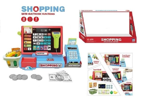 kasa sklepowa na baterie, z zakupami, skaner, panel dotykowy; 38,5x21,5x15,5cm, W/B