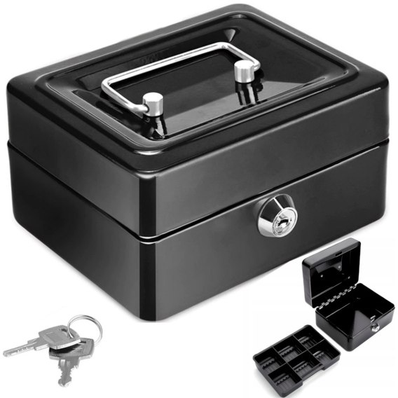 Kasetka na pieniądze bilon metalowa zamykana na klucz 15 x 12 x 8 cm - czarna