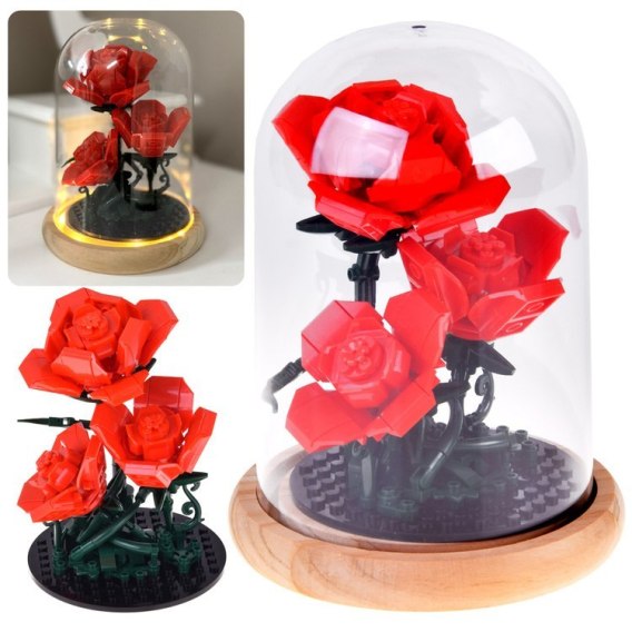 Klocki konstrukcyjne Podświetlana RÓŻA pod kopułą - kwiaty 219-ele ZA5901