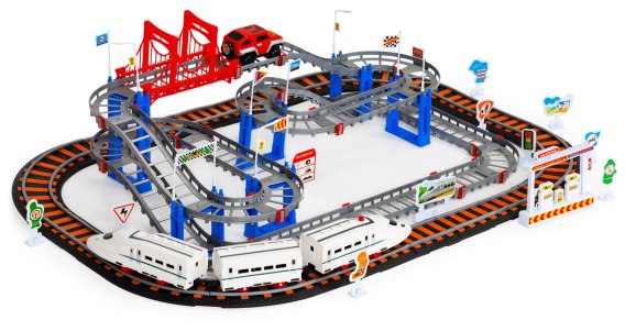 Kolejka i auto na baterie dwa tory miasto 108 elementów