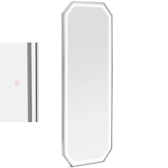 Konsola konsoleta fryzjerska lustro z oświetleniem LED ośmiokątne 180 x 70 cm - srebrne