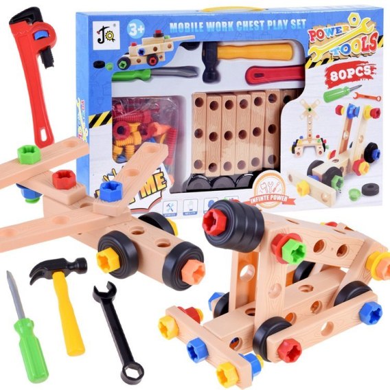 Klocki oraz narzędzia są wykonane w całości z plastiku.