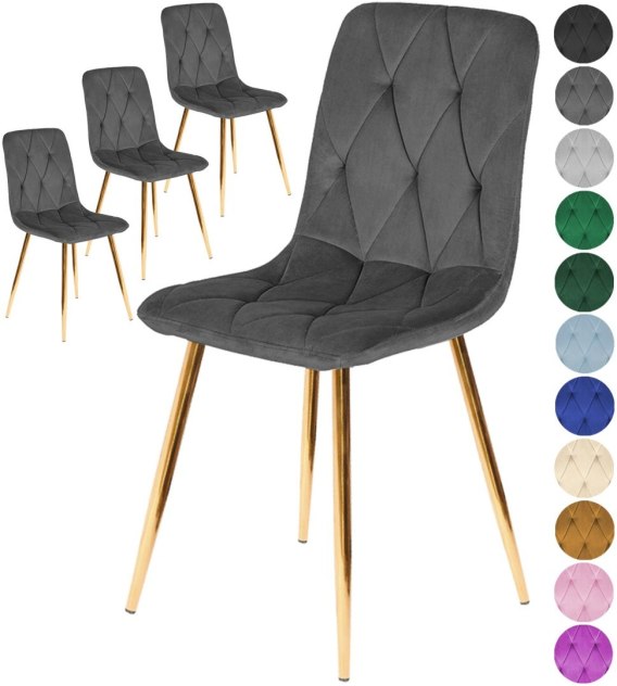 Nowoczesne, solidne i wygodne krzesło tapicerowane welurową tkaniną z przeszyciami w pięknych kolorach.