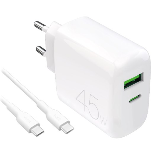 Ładowarka sieciowa USB-C USB-A PD z kablem USB-C 45W - biała