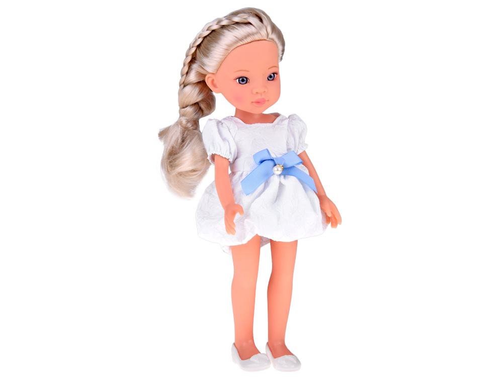 Lovely Girl Urocza Lalka w białej sukience z niebieską kokardką 33cm ZA5850