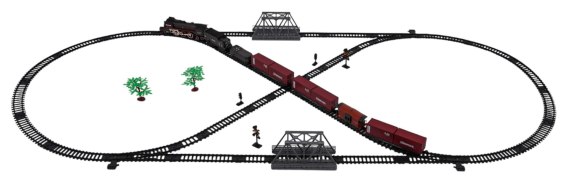 Zestaw kolejka retro z funkcją dymu i odgłosami jazdy, a także torami w zestawie to propozycja dla dzieci od 3-go roku życia. Zabawka zasilana jest akumulatorem typu 3,7 V(w zestawie), pilot bateriami typu 2 x AA 1,5 V (brak w zestawie). Pilot jest jednocześnie jednym z wagonów. Podczas jazdy lokomotywa wypuszcza z komina i po bokach dym (po wcześniejszym uzupełnieniu jej wodą - pipetka do wody dołączona do zestawu), dodatkowo świeci się światełko zamontowane w części frontowej. Tory posiadają łatwy sposób łączenia, dzięki temu są bezpieczne i wytrzymałe w użytkowaniu.