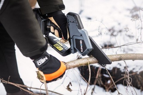 Mini pilarka łańcuchowa akumulatorowa Energy+ 18 V 58GE116 marki GRAPHITE to urządzenie o niewielkich rozmiarach, które umożliwia szybkie oraz efektywne cięcie drewna, a także przycinanie gałęzi. Funkcjonuje w systemie akumulatorowym Energy+. Kompatybilne jest z bateriami litowo-jonowymi 18 V i w zależności od ich pojemności, może działać na biegu jałowym przez 45 minut - 2 Ah, 90 minut - 4 Ah lub 180 minut - 6 Ah. Osiąga prędkość od 0 do 20 000 RPM. Z kolei prędkość cięcia to 8 m/s. Długość łańcucha w tym modelu wynosi 10 cm i zapewnia max cięcie 8 cm. Mini pilarka wyposażona została w bezpieczny wyłącznik chroniący przed przypadkowym uruchomieniem oraz ergonomiczny uchwyt dla wygodnego manewrowania narzędziem. Pilarka marki GRAPHITE polecana jest entuzjastom ogrodnictwa.