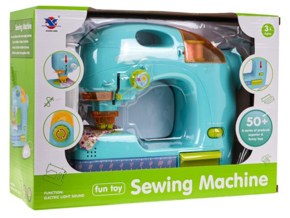 Interaktywna maszyna do szycia z efektami dźwięku i światła dla dzieci od 3-go roku życia. Zabawka wykonana z solidnych materiałów i bezpieczna dla dziecka. Maszyna posiada igłę w zabudowie, która zabezpiecza, przed skaleczeniem się dziecka. Zabawkę wyposażono w praktyczną myszkę uruchamiającą maszynę, pokrętło do podnoszenia igły, podnośnik stopki oraz wbudowany schowek na akcesoria. Podczas pracy maszyny, świeci się światełko. W zestawie z maszyną znaleźć możemy również 3 szpulki nici i kawałek materiału z wykrojoną sukienką. Zabawa maszyną wspomaga rozwój koordynacji wzrokowo-ruchowej i kreatywności. Maszyna zasilana jest bateriami typu 4 x 1,5V AA (brak w zestawie).