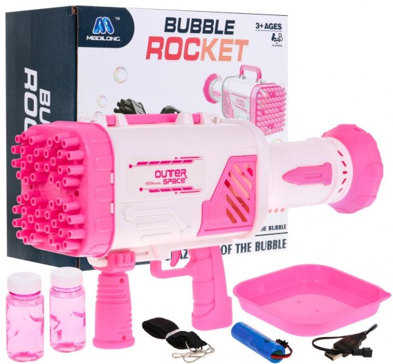 Maszyna do Baniek mydlanych Pistolet dla dzieci 3+ różowy Broń z wiatraczkiem + Płyn do baniek
