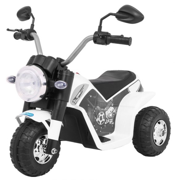 Motorek MiniBike na akumulator dla dzieci Biały + Dźwięki + Światła LED + Ekoskóra