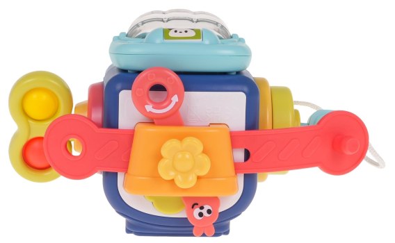 Multifunkcyjna, edukacyjna zabawka dla maluszków od 12-go miesiąca życia. Ta przenośna zabawka łączy w sobie wiele funkcji i nie pozwoli na nudę, wiele elementów jest do odkrycia i wiele umiejętności do wyćwiczenia. Maluszek może naciskać, obracać pokrętłami, przesuwać, dopasowywać, ciągnąć różne elementy zabawki , co stymuluje jego koordynację ręka-oko i ćwiczy małe rączki. Zabawka wykonana, z najlepszej jakości materiałów w żywych kolorach.