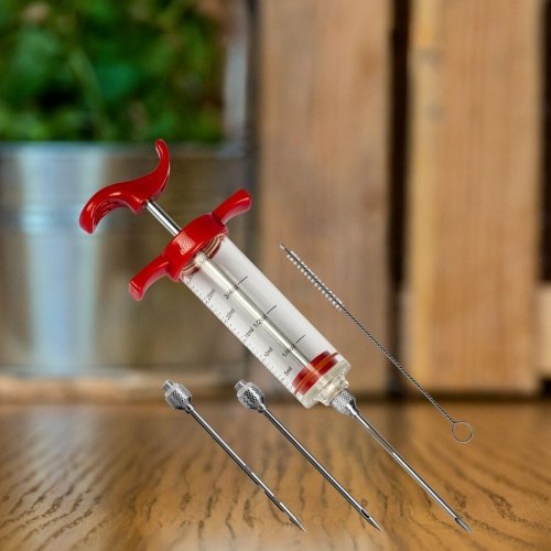Innowacyjne rozwiązanie dla domowych mistrzów kulinarnych: nastrzykiwarka 30ml + 3 igły + czyścik Zrewolucjonizuj sposób przygotowywania mięs Wyobraź sobie soczyste, pełne smaku mięsa przy każdym kęsie - to możliwe dzięki naszej nastrzykiwarce 30ml. Dzięki trzem wymiennym igłom, które precyzyjnie dostarczają marynaty głęboko w strukturę mięsa, Twoje dania zyskają na smaku i aromacie. Idealne rozwiązanie do przygotowywania specjałów na grille, uroczyste obiady, czy codzienne posiłki. Łatwość użycia i czystości Zapomnij o bałaganie w kuchni! Nasza nastrzykiwarka została zaprojektowana z myślą o prostocie użycia i łatwości czyszczenia. W komplecie znajduje się także czyścik, dzięki czemu utrzymanie nastrzykiwarki w idealnej czystości jest łatwiejsze niż kiedykolwiek. Preparowanie mięs nigdy nie było takie proste! Zaawansowana technologia na wyciągnięcie ręki Korzystanie z nastrzykiwarki to nie tylko oszczędność czasu, ale również gwarancja, że każdy kawałek mięsa będzie równomiernie nasączony marynatą. Technologia ta pozwala na osiągnięcie głębi smaku, której nie zapewni żadna inna metoda przygotowywania mięs. Spraw, by Twoje kulinarne dzieła były zawsze perfekcyjne.
