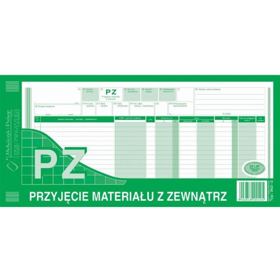 PRZYJĘCIE MATERIAŁU Z ZEWNĄTRZ 1/3 A3 (WIELOKOPIA)