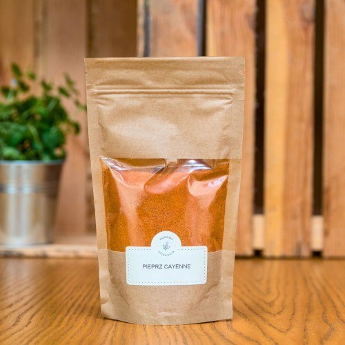 Pieprz cayenne  otrzymywany jest z owoców papryki krzewiastej. Jest to najostrzejsza odmiana papryki. W ostatnim czasie przyprawa ta znacznie zyskuje w naszym kraju na popularności nie tylko ze względu na swoje szerokie zastosowanie w kuchni, ale również ze względu na swoje właściwości prozdrowotne i odchudzające. Mielony pieprz cayenne wyróżnia się intensywnym zapachem i wyjątkowym smakiem. Dodana do potraw skutecznie rozgrzewa nasz organizm, a także zaostrza apetyt. Potęguje doznania smakowe wielu potraw, głównie tych mięsnych. Właściwości pieprzu cayenne: zawiera wiele witamin i minerałów, ma działanie antybakteryjne, pieprz cayenne wykazuje właściwości przeciwbólowe, skutecznie rozgrzewa, zawiera wiele antyoksydantów, łagodzi wzdęcia i przyspiesza trawienie, kapsaicyna zawarta w pieprzu cayenne przyspiesza metabolizm.   Możliwości zastosowania pieprzu cayenne: jeden z najważniejszych składników diety lemoniadowej (diety Hollywood), często używany do przygotowania owoców morza, mielony pieprzem cayenne można przyprawić wiele rodzajów mięs, idealny do marynowania mięs. Ciekawostki: Dla podkreślenia smaku potraw warto podgrzać przyprawę na oliwie lub maśle przed dodaniem.