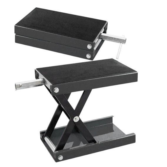 Dzięki udźwigowi aż do 450 kg oraz obsłudze za pomocą korby, grzechotki lub klucza, precyzyjnie dopasujesz pozycję roboczą do swojego pojazdu. Gumowana platforma chroni powierzchnię motocykla, a kompaktowe wymiary sprawiają, że sprzęt po złożeniu nie zajmuje dużo miejsca.