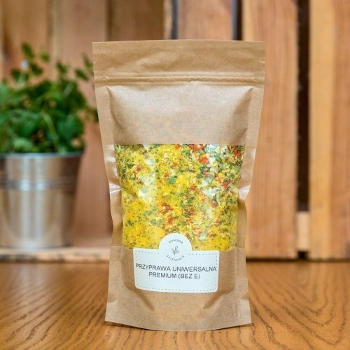 Przyprawa Uniwersalna 500g do potraw z Domowej Spiżarni, pokreśli smak każdego dania! Kiedyś nie mieliśmy tak łatwego dostępu do świata przypraw, w każdym domu jedną z głównym kompozycji stanowiła właśnie przyprawa typu Vegeta! Właściwości przyprawy uniwersalnej: Wyważone połączenie suszonych warzyw, doskonale komponuje się z ziołami i odrobiną soli - właśnie dzięki tej mieszance jest doceniana na całym świecie, zaś kucharze coraz częściej uważają, że to 5 smak umami, ponieważ „wyciąga" ona z dania jego wszystkie walory smakowe, podkreślając je, a jednocześnie nie dominując smaku potrawy. Przyprawa uniwersalna to Twoja nagroda, za wysiłki kulinarne, które stawiasz przed sobą każdego dnia. Pomaga odnajdywać nowe inspiracje i sprawia, że każda potrawa osiąga perfekcyjny wymiar. Skład przyprawy uniwersalnej: Marchewka (stanowi bogate źródło karotenoidów, witamin i przeciwutleniaczy, wzmacnia odporność, poprawia cerę i przyspiesza opalanie), Cebula (polecana przy przeziębieniach, posiada właściwości odkażające oraz jest bogata w magnez, siarkę, cynk i krzem, wzmacniając odporność organizmu), Lubczyk (nazywany naturalnym afrodyzjakiem, nadaje potrawom charakterystyczny posmak kojarzony z Magi i wspomaga pracę jelit), Natka Pietruszki (poprawia cerę, oczyszcza organizm, a także łagodzi nerwobóle oraz posiada duże ilości żelaza i witaminy C), Pasternak (poprawia trawienie, działa przeciwzapalnie i rozkurczowo). Zastosowanie: Znakomicie nadaje się do potraw mięsnych, rybnych, warzyw oraz panierek, sosów oraz zup. Komponuje się doskonale z polską kuchnią, wydobywając największe walory smakowe przygotowywanych dań. Gotowanie z naszą przyprawą uniwersalną jest łatwe i przyjemne, zaś efekty końcowe gwarantowane!