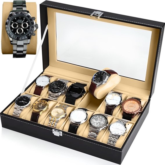 Pudełko organizer box na zegarki lub biżuterię 12 przegród - czarne