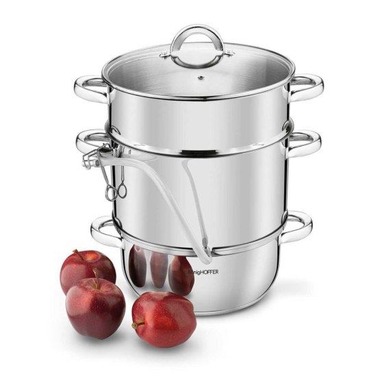Sokownik daje możliwość aby w prosty sposób zrobić domowy sok z ulubionych owoców lub warzyw. Uzyskujemy sok pasteryzowany a więc możemy go bez problemu przechowywać przez dłuższy okres czasu. Sokownik pozwoli na przygotowanie smacznego soku w maks. 2 godziny. Ten model sokownika przystosowany jest również do stosowania go na kuchenkach indukcyjnych. Potrójne akutermiczne dno zapewni wieloletnią satysfakcję z produktu.
