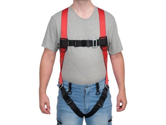 Szelki bezpieczeństwa YT-74221 to element systemu przeznaczonego do zabezpieczenia osób przed upadkiem z wysokości. Prawidłowo założone szelki muszą ściśle przylegać do tułowia oraz ud, by wraz z dedykowanym punktem zaczepowym móc równomiernie rozłożyć siły działające na ciało w trakcie upadku.