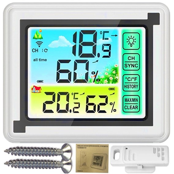 Stacja pogody bezprzewodowa termometr higrometr 1 czujnik zewnętrzny -20-70C
