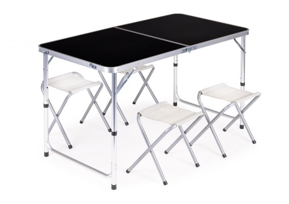 Stolik turystyczny stół składany zestaw 4 krzesła czarny MultiGarden