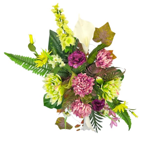 Stroik cechuje się unikalną kompozycją sztucznych kwiatów oraz innych dodatków. Starannie dobrane kwiaty są niezwykle realistyczne i naturalne, dodając wiązance autentyczności i podkreślając jej uroczysty charakter.