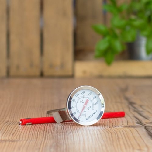 Termometr kuchenny jest uniwersalny do mierzenie temperatury podczas pieczenia i gotowania mięsa. Pozwala kontrolować temperaturę przygotowania takich mięs jak wołowina, wieprzowina czy też mięsa drobiowego. Idealny stek oraz soczyste pieczenie dzięki kontroli temperatury nie sprawią Ci już większego kłopotu. Termometr dzięki dużego zakresu temperatury możesz używać również do pomiaru innych potraw. Dzięki czytelnej skali termometr jest bardzo łatwy w użyciu. Wykonany został z wysokiej jakości materiału, dzięki czemu posłuży Ci na długo. A dołączone do termometru etui zagwarantuje mu bezpieczne przechowywanie. Wskazówki: czujka termiczna znajduje się w obszarze między 1,3cm a 5cm od początku szpikulca w celu uniknięcia zabrudzeń lub uszkodzenia, szpikulec termometru przechowuj w plastikowej osłonce, która znajduje się w komplecie Czerwona wskazówka ma na celu wskazać temperaturę, natomiast srebra stopień wypieczenia oraz rodzaj mięsa. Termometr nie może pozostawać w piekarniku w trakcie pieczenia, służy tylko do jednorazowej kontroli temperatury podczas pieczenia. PRODUCENT: