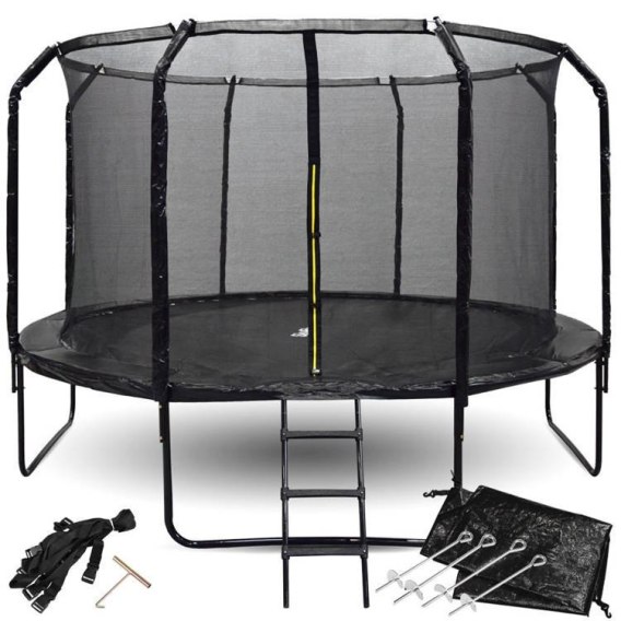 Trampolina ogrodowa SkyFlyer Black 366 cm z siatką i profilowanymi słupkami to propozycja dla wszystkich lubiących i ceniących sobie dobry ruch. Nie od dziś wiadomo, że ruch to zdrowie, endorfiny, pozytywne nastawienie, wszystko co dobre. Dlatego taka trampolina we własnym ogrodzie to fantastyczny motywator do wprawiania własnego ciała w ruch! Nie ma na co czekać właśnie ta trampolina pozwoli Tobie i Twoim dzieciom być w świetnej kondycji i formie.