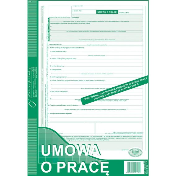 * druk opracowany na podstawie przepisów kodeksu pracy obowiązujących od 26 kwietnia 2023 roku