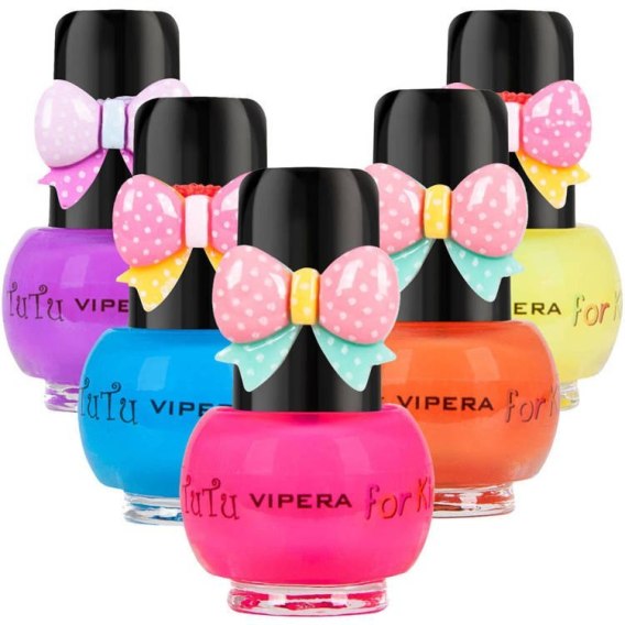 Vipera Lakiery do Paznokci Tu Tu to seria kosmetyków stworzona dla dzieci od 3 roku życia. Lakiery są oparte na bezpiecznych formułach na bazie wody. Neutralne dla delikatnej płytki paznokcia dziecka. Usuwane bez użycia rozpuszczalników, metodą peel-off (zdejmowane z paznokcia jak naklejka). Sześć kolorowych, soczystych, błyszczących i smakowicie pachnących truskawkami odcieni pobudzi fantazję i na pewno będzie pasować do każdej stylizacji. W prezencie do dziewczynki do każdego lakieru dołączona została śliczna, kolorowa gumka do włosów.