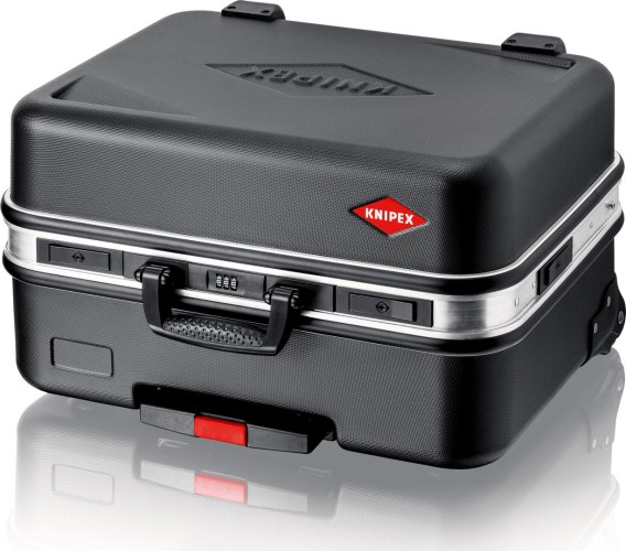 Rama aluminiowa po obwodzie z solidnie zamocowaną, stabilną ścianką środkową, którą można wyposażyć w narzędzia po obu stronach, z uniwersalnymi możliwościami uzupełniania wyposażenia walizki dzięki elastycznym uchwytom pętelkowym i dwunastu małym kieszonkom