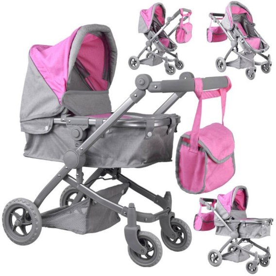 Duży, zwrotny wózek typu gondola z opcją 4w1 dla najmłodszych zachwyci każdą małą opiekunkę lalek i misiów i innych przytulaków. Wózek bardzo starannie i dokładnie wykonany, z lekkiej konstrukcji. Jego atutem jest to iż mając jeden wózek można go przekształcić z głębokiego wózka na spacerowy, bez żadnych dodatkowych koszów, przepinek. W łatwy sposób dzięki paru zatrzaskom przekształcamy gondole w wózek spacerowy. Lekka konstrukcja pozwoli na płynne prowadzenie go przez małą dziewczynkę lub chłopczyka.