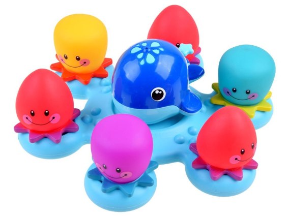 Dzięki pływającej wyspie dziecko będzie mogło mieć zabawkę obok siebie. Zabawka uczy przyporządkowywania poszczególnych elementów do odpowiednich otworów co jest przydatne w uczeniu dziecka odkładania przedmiotów na swoje miejsce. Ośmiorniczki można także przyczepić do płytek w łazience, tworząc przy tym uroczy, kolorowy obraz. Wieloryb posiada przycisk do pompowania wody, co też pozwoli na wymyślanie różnych zabaw.