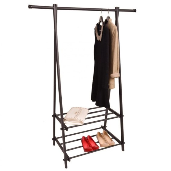 Wieszak stojak z półkami czarny 2 półki