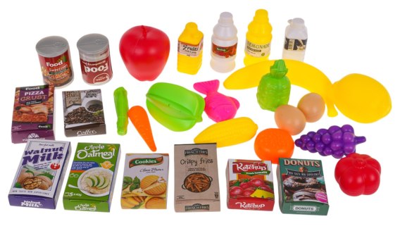 - kartoniki z produktami takimi jak: donuty, ciasteczka, kawa, ketchup, pizza, makaron, mleko,