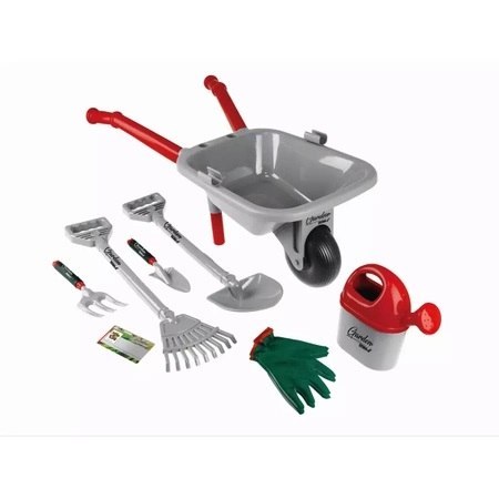 W zestawie znajduje się taczka, łopata, grabie, małe grabki, mała łopatka, konewka, rękawice dziecięce oraz papierowa wizytówka - cały taki komplet sprawia, że nasza pociecha może poczuć się jak prawdziwy ogrodnik!