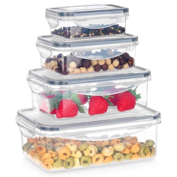 Zestaw 4 pojemników kuchennych w o pojemności: 1,5 l, 1l, 500 ml oraz 240 ml. Idealne do przechowywania żywności oraz produktów sypkich.
