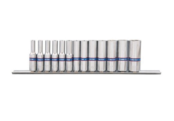 ZESTAW NASADEK 1/4'' DŁUGIE 4-14MM 6-KĄT 13CZ. SZYNA