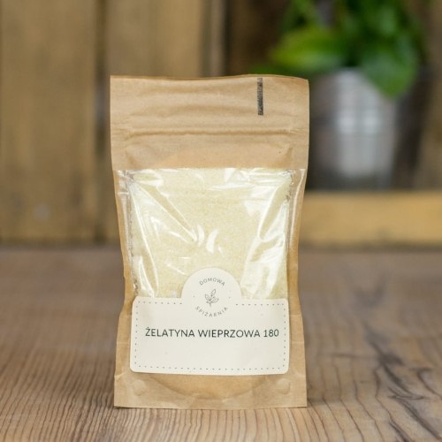 Żelatyna wieprzowa - naturalny składnik do deserów i dań wytrawnych Żelatyna wieprzowa to wysokiej jakości produkt, który idealnie sprawdzi się w kuchni do przygotowywania galaretek, serników, musów, kremów oraz dań wytrawnych, takich jak galarety mięsne czy rybne. Dzięki swojej uniwersalności i łatwości użycia, żelatyna wieprzowa jest niezastąpionym składnikiem zarówno w codziennych, jak i świątecznych przepisach. Wysoka jakość i naturalne pochodzenie Żelatyna wieprzowa to produkt pochodzenia naturalnego, uzyskiwany z kolagenu, co sprawia, że jest bezpieczny i zdrowy dla całej rodziny. Nie zawiera dodatków ani konserwantów, a jej czysty skład pozwala na uzyskanie idealnej konsystencji w potrawach - jest bezsmakowa i bezbarwna, dzięki czemu nie wpływa na smak przygotowywanych dań. Uniwersalne zastosowanie w kuchni Żelatyna wieprzowa sprawdzi się w wielu przepisach. Można ją stosować zarówno do słodkich deserów, takich jak galaretki owocowe, ciasta i kremy, jak i do dań wytrawnych, takich jak mięsne galarety czy zimne przekąski. Dzięki swojej wszechstronności jest niezastąpionym dodatkiem w kuchni, umożliwiającym tworzenie lekkich i apetycznych potraw. Łatwość przygotowania Żelatyna wieprzowa jest prosta w użyciu - wystarczy rozpuścić ją w ciepłej wodzie i dodać do potrawy, aby uzyskać pożądaną konsystencję. Opakowanie zawiera precyzyjną instrukcję użycia, co ułatwia idealne przygotowanie deserów i dań na każdą okazję. Wydajne opakowanie Produkt dostępny w wygodnym i wydajnym opakowaniu, które pozwala na przygotowanie wielu porcji potraw. Dzięki temu żelatyna jest ekonomicznym wyborem, który posłuży do tworzenia wielu pysznych dań. Żelatyna wieprzowa to niezawodny i wszechstronny składnik kuchni, który doskonale sprawdzi się w przygotowywaniu zarówno deserów, jak i dań wytrawnych. Wysoka jakość, naturalne pochodzenie i łatwość użycia sprawiają, że jest to produkt, który warto mieć zawsze pod ręką, by tworzyć smaczne i estetyczne potrawy na każdą okazję.