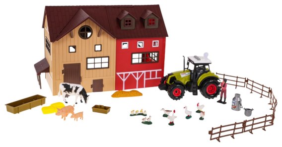 - stodoła, zagroda, zwierzątka i traktor w zestawie,