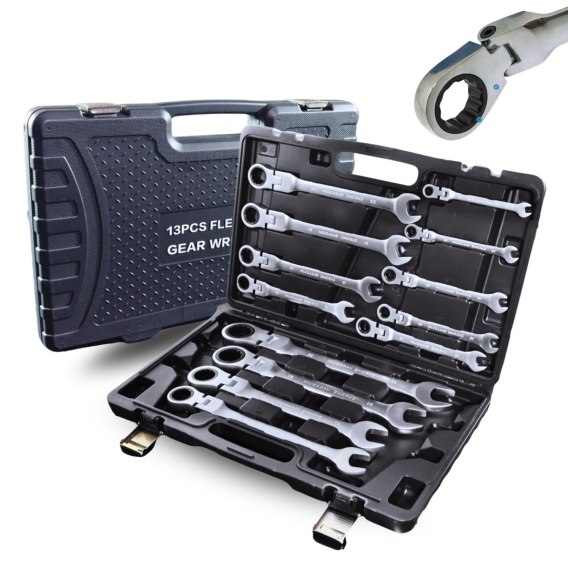 Zestaw Kluczy Oczkowych z Grzechotką 13 el Elastycznych 8-32mm Stal Walizka
